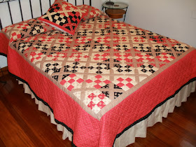 Esta mañana me he llevado una sorpresa, el actual dueño de esta maravillosa colcha La colcha de Sagrario me ha dejado un comentario en la entrada, y después me ha mandado estas fotos para que vea y veáis la colcha terminada. Solo hay un cojín, porque creo recordar que la tela de marcus Brothers estaba agotada.